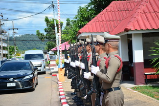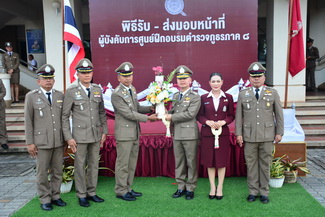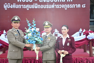 ข้าราชการตำรวจและนักเรียนนายสิบตำรวจ ศูนย์ฝึกอบรมตำรวจภูธรภาค 8 ร่วมแสดงความยินดีและให้การต้อนรับพลตำรวจตรี ภัทรวิชญ์ คีตโมทนียกุล เนื่องในโอกาสที่เดินทางมารับตำแหน่งผู้บังคับการศูนย์ฝึกอบรมตำรวจภูธรภาค 8 ในวันที่ 7 ตุลาคม 2568